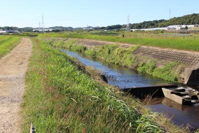 殿橋を阿久比町側に渡り、坂を下ったところから西を望む