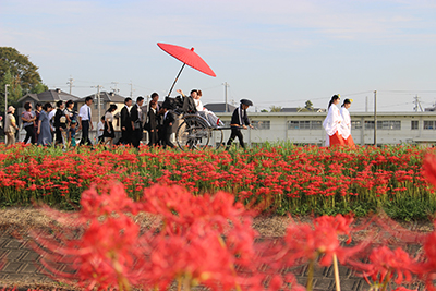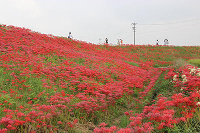 コロナ禍以来3年ぶりに「ごんの秋まつり」が開催され、彼岸花も見事に咲きそろいました。2022年の見頃は9月27日、28日ごろで、お彼岸よりも遅くなりましたが、9月20日ごろから咲きだしたところもあり、10月の頭には全体的に枯れかけていました。