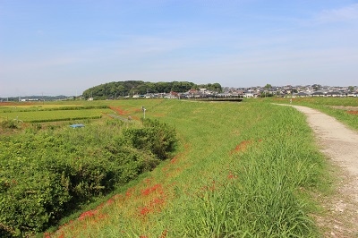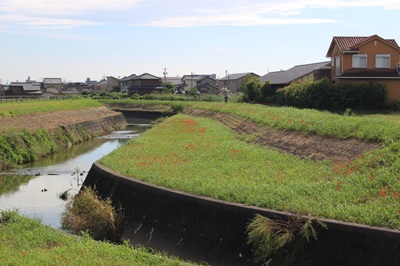 阿久比町側でほぼ満開を迎え「赤い絨毯」が広がっています